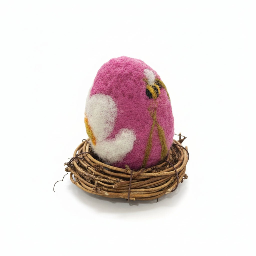 These sweet needle felted eggs are full of charm and handmade character. Each egg is carefully crafted by hand, which means no two are ever exactly the same. Every one comes with its own little nest to sit on, making it ready to display the moment you bring it home.