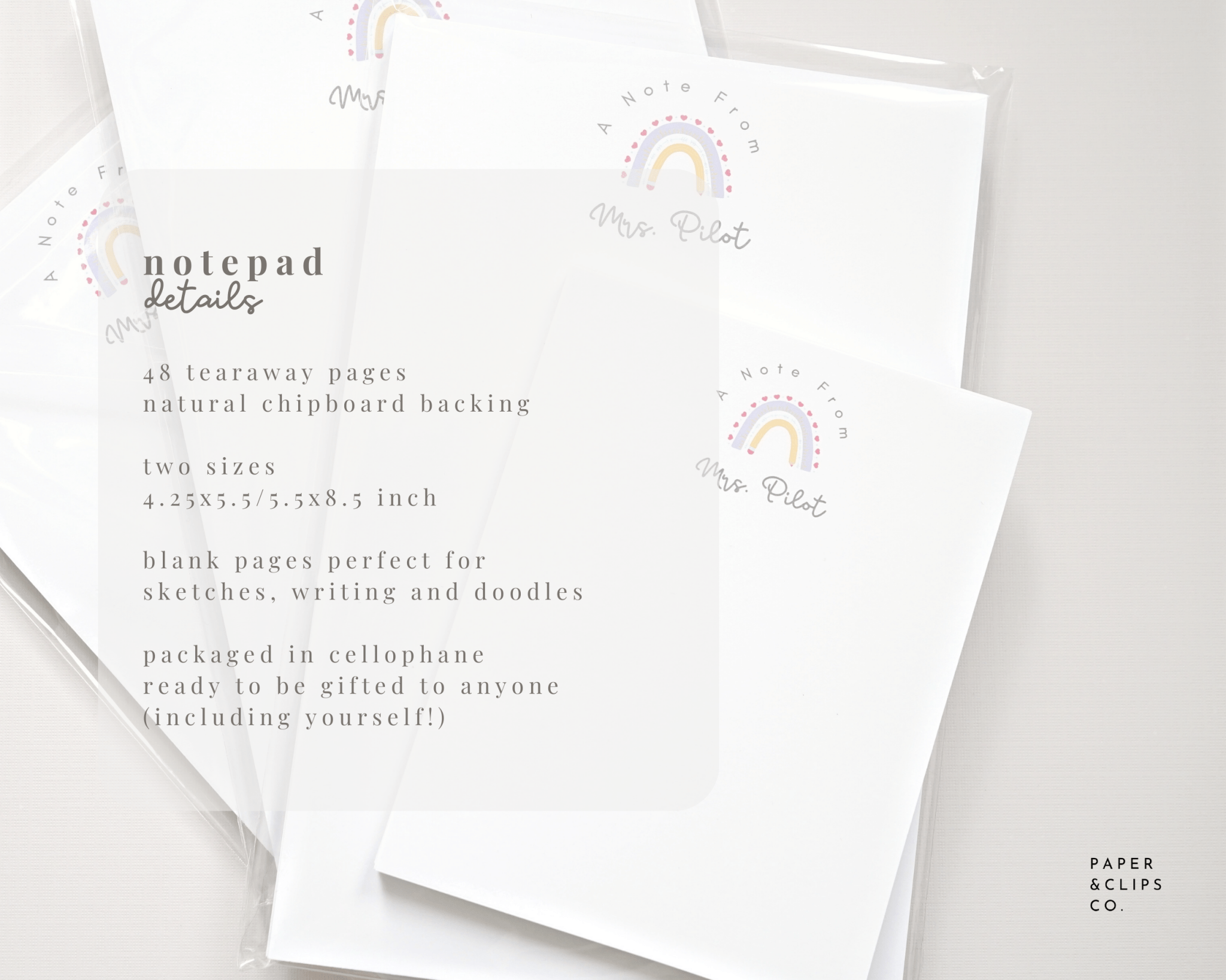 • Blank notepads perfect for writing, sketches, doodles