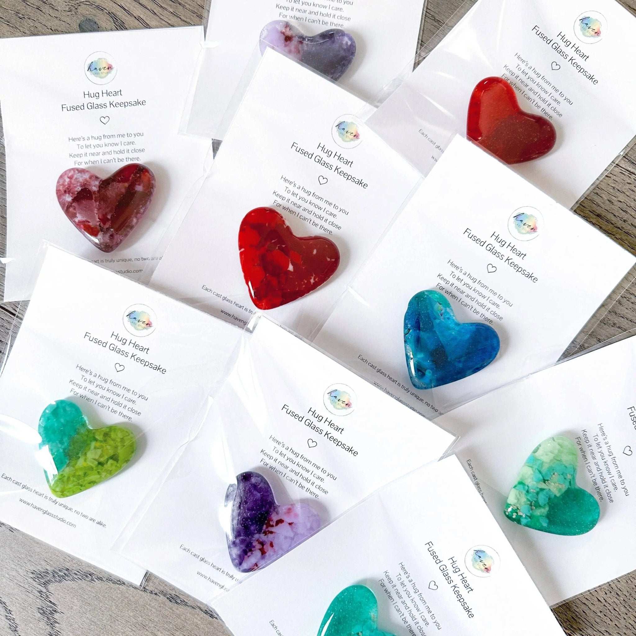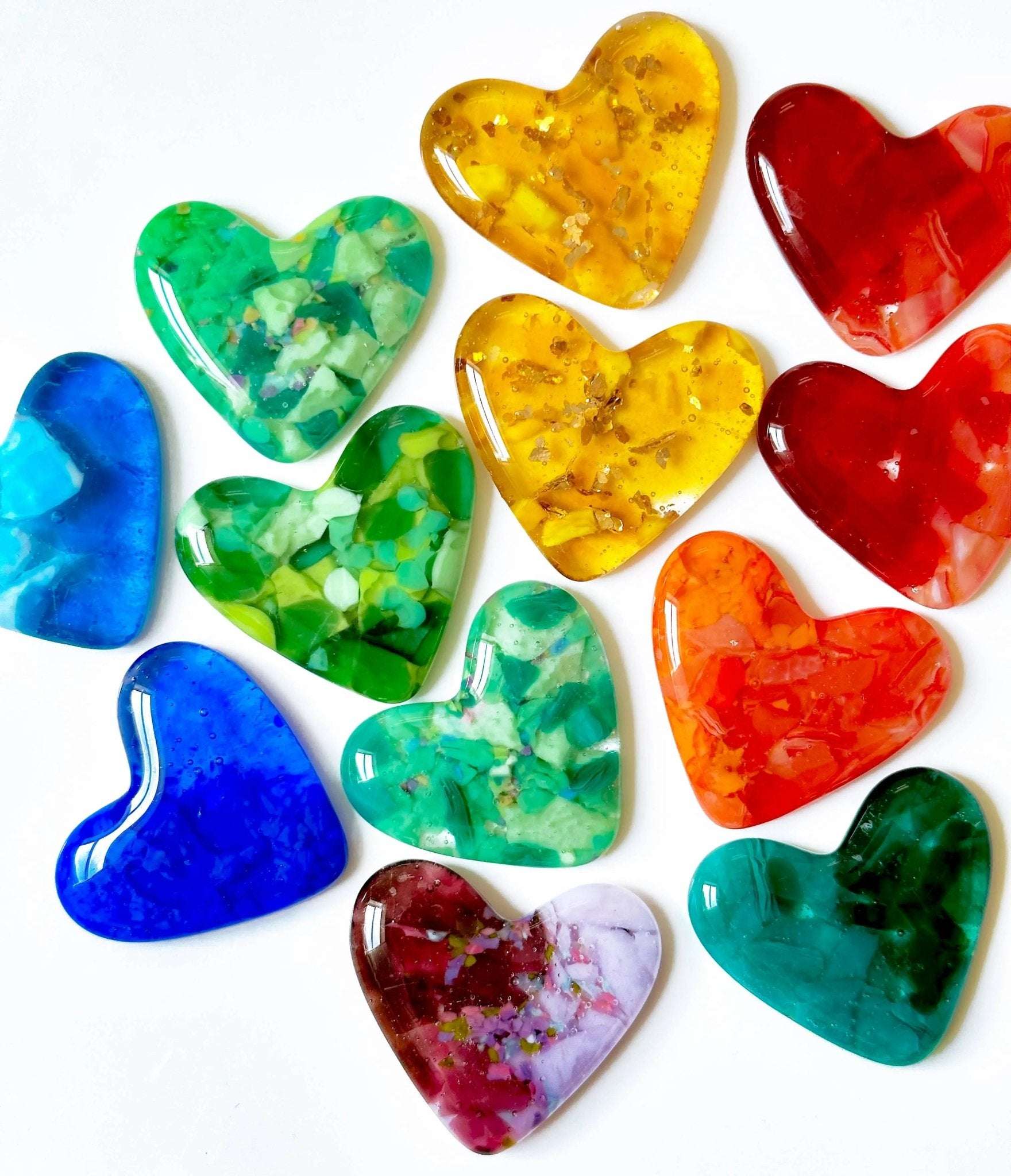 Each cast glass heart is truly unique, no two are alike. Created in a mixture of solid and transparent glass in a selection of bright and beautiful rainbow of colours. Let us pick out one of our favourites to package up for you or visit us in store for our latest selection.