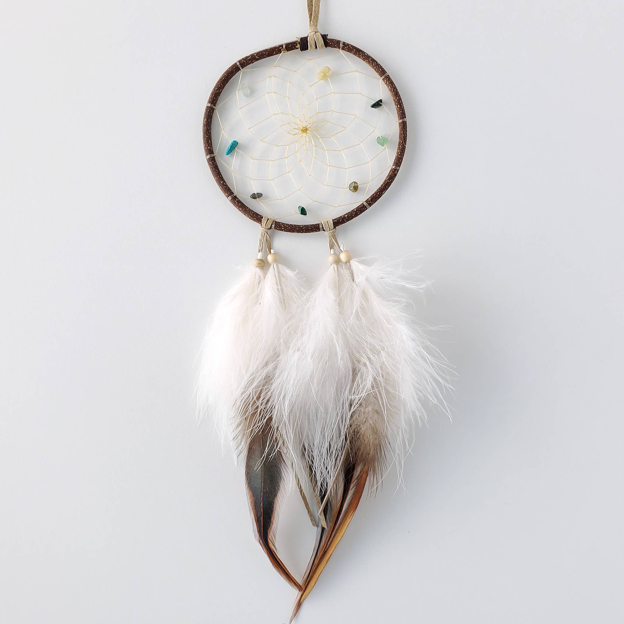 4" Natural Twig Dream Catcher, detailed with assorted semi-precious stones around the web.